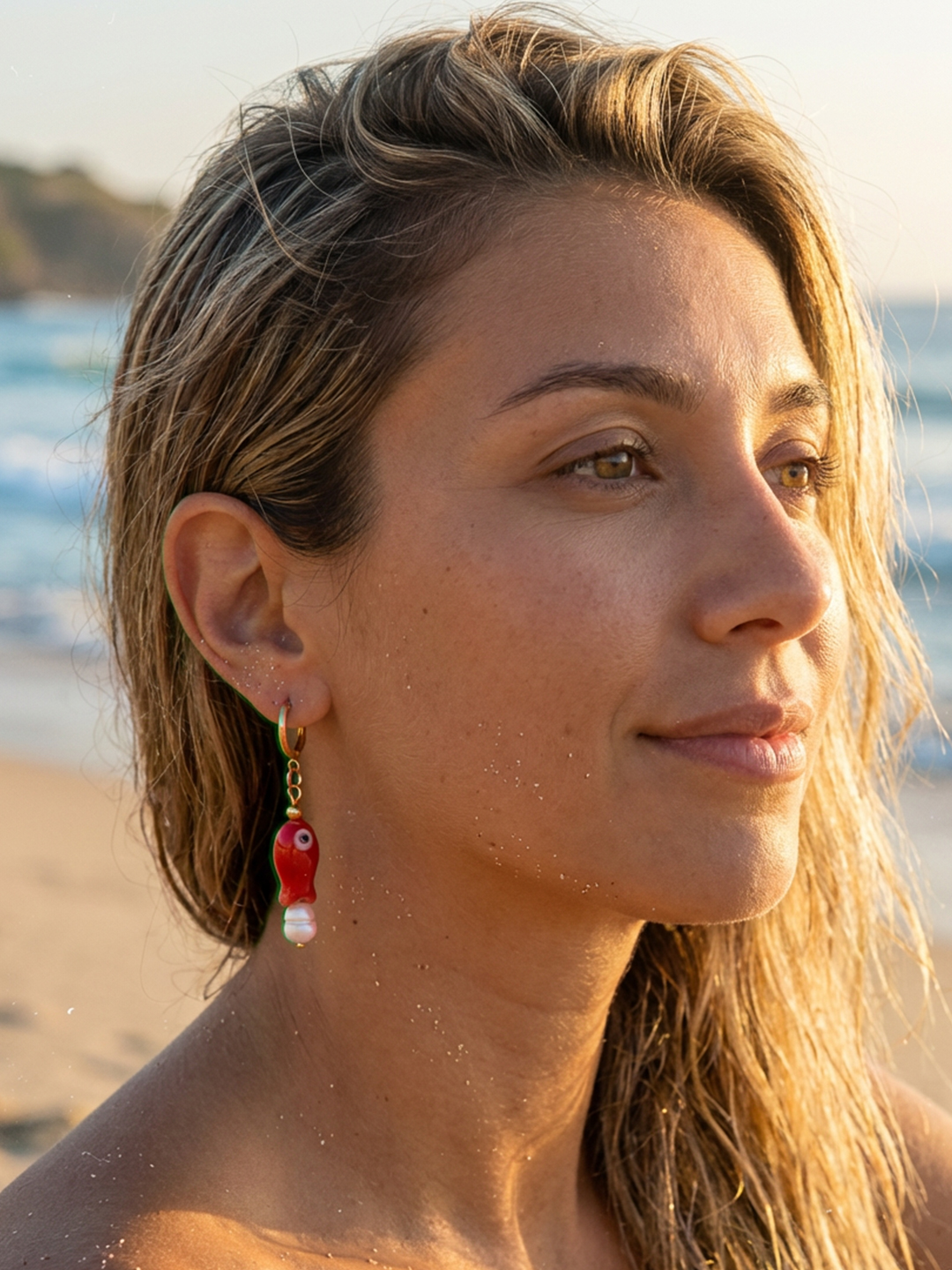 Versáteis, as Argolas Click Sardinhas Vermelhas Dourado combinam facilmente com looks casuais ou sofisticados, trazendo um toque de estilo autêntico e contemporâneo. Seja para um encontro, um passeio à beira-mar ou um evento especial, elas são o acessório que expressa sua personalidade vibrante com requinte.